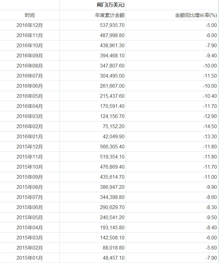 你現(xiàn)在的位置: 網(wǎng)站首頁 >> 閥門講堂 >> 國內(nèi)閥門的春天:2016年至2017 閥門進(jìn)口金額同比下降