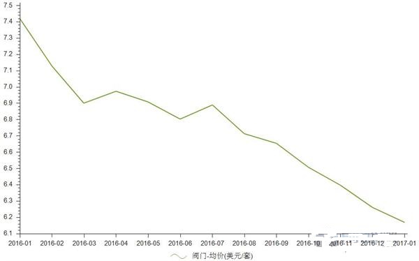以下為2016年1月—2017年1月閥門進(jìn)口均價(jià)走勢(shì):